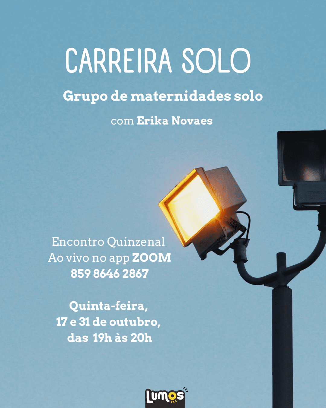 O grupo mediado por Erika Novaes, todas as quintas, às 19h. E já nasce com esse nome de “Carreira”, pensando que é preciso entender que maternar é um trabalho não remunerado na nossa sociedade. E definindo maternidade com “S” mesmo, porque ser mãe não é uma experiência universal, e sequer se resume a um único gênero. Te esperamos e abrimos as portas pra compartilhar vivências, acolher os perrengues, formar rede, e pensar juntes sobre o que significa criar crianças sozinhe totalmente, ou em partes.