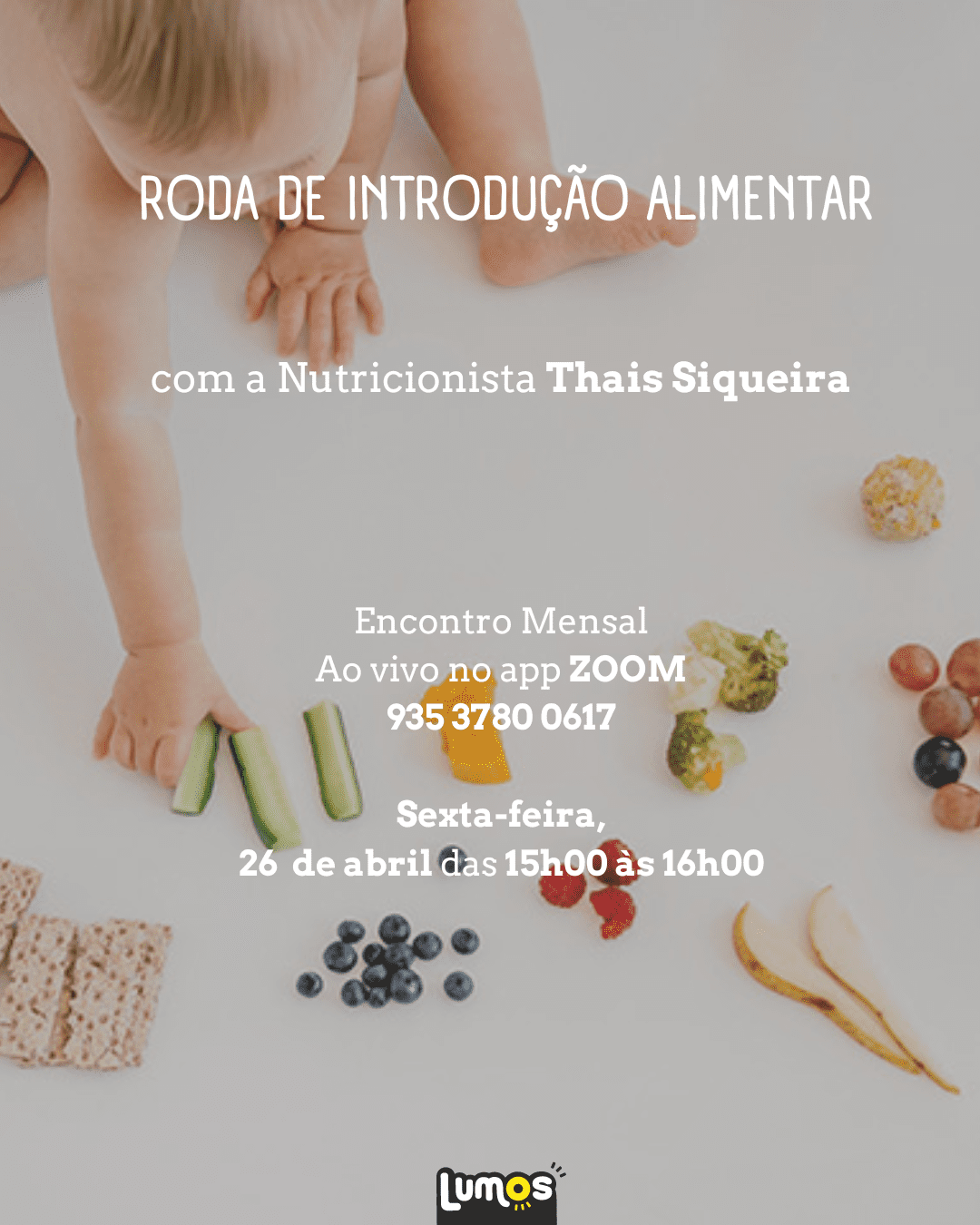 Essas e outras dúvidas serão debatidas com a mediação da Thais, nutricionista materno infantil da Lumos.